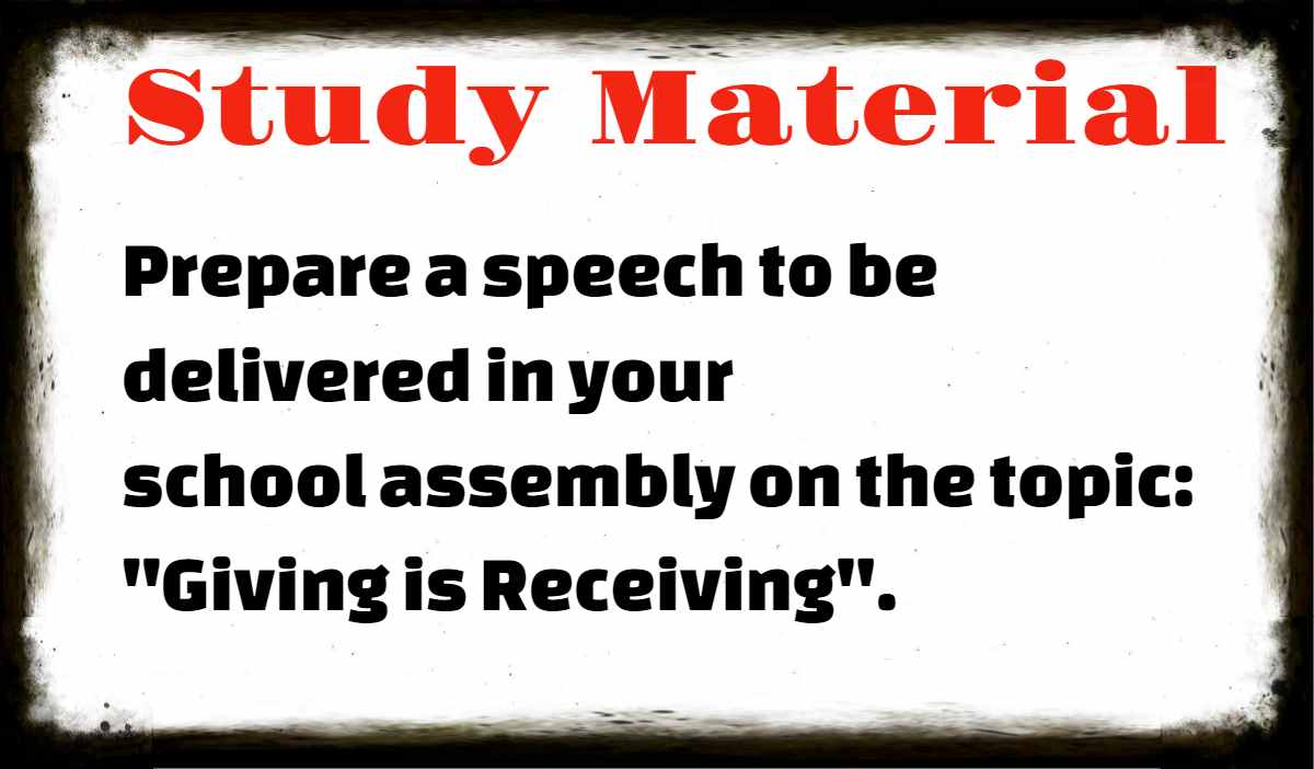 Q. Prepare a speech to be delivered in your school assembly on the topic: “Giving is Receiving”.